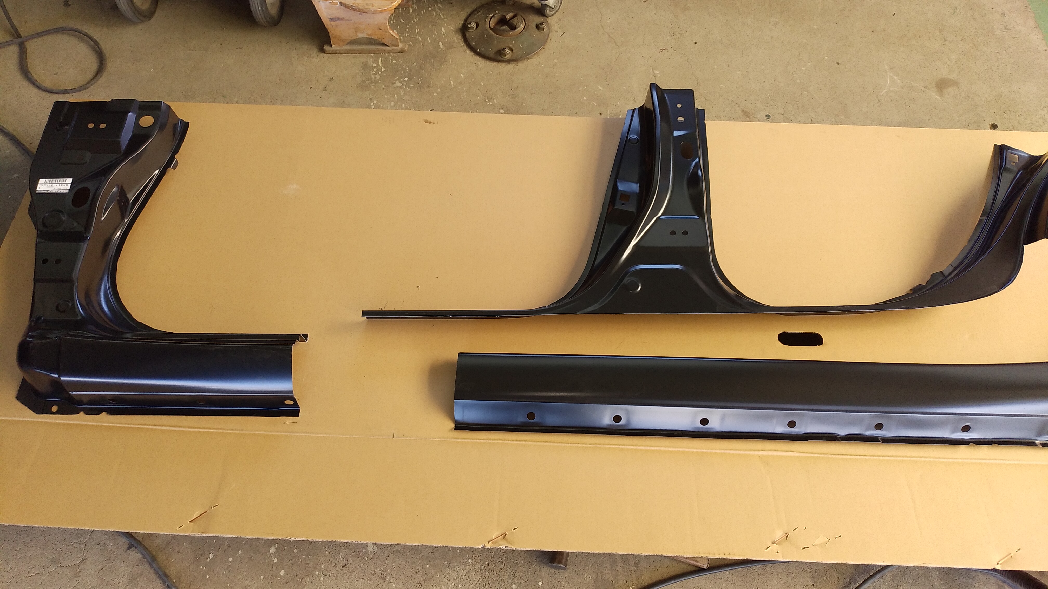 ドアを開いてステップの所が平らになっているので、そこに被せるようにパネルボンドで圧着し、下側は溶接で接合します。